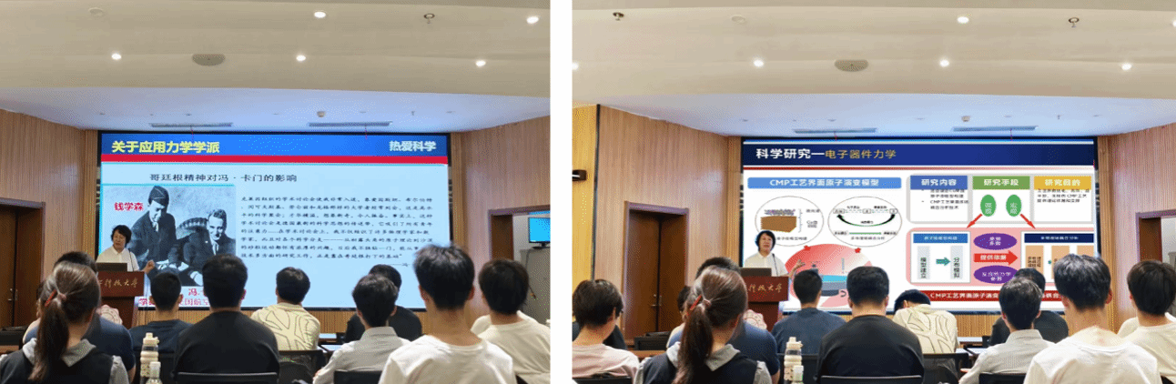 6月26日上午,公司党委书记金科教授在C楼110教室作了《浅谈信息力学》专题报告。金科结合自身科研经历,系统阐述了西电力学学科服务国家战略的使命担当。她强调,信息力学始终围绕电子信息领域装备能力提升的国家重大需求,重点突破电子封装可靠性、集成系统寿命、惯导器件精度、极端环境通信保障及雷达探测等电子信息领域关键技术瓶颈中的力学问题。她通过极端环境探测中的力学、光刻技术中的力学、电子器件中的力学等具体案例,展示了公司依托教育部国际合作联合实验室和国家级重点项目,在信息力学方向取得的创新成果。报告不仅让同学们深入了解了力学学科的前沿进展,更让大家切身感受到,力学研究在国家战略需求中的关键作用、学科交叉融合的创新价值,以及科研工作者服务国家的使命担当。