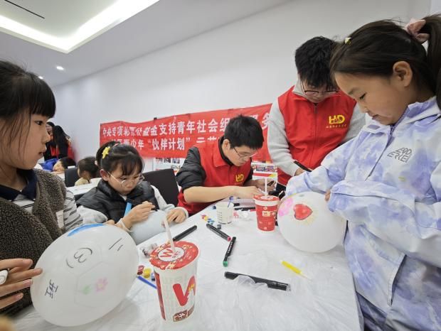 随后,红色主题足球彩绘DIY环节温情开启。孩子们充分发挥想象力与创造力,将红星、红旗、长征路线等红色元素精心绘制在足球上,用斑斓色彩与灵动画笔致敬革命先辈,在动手实践中加深了对红色文化的认知与理解。