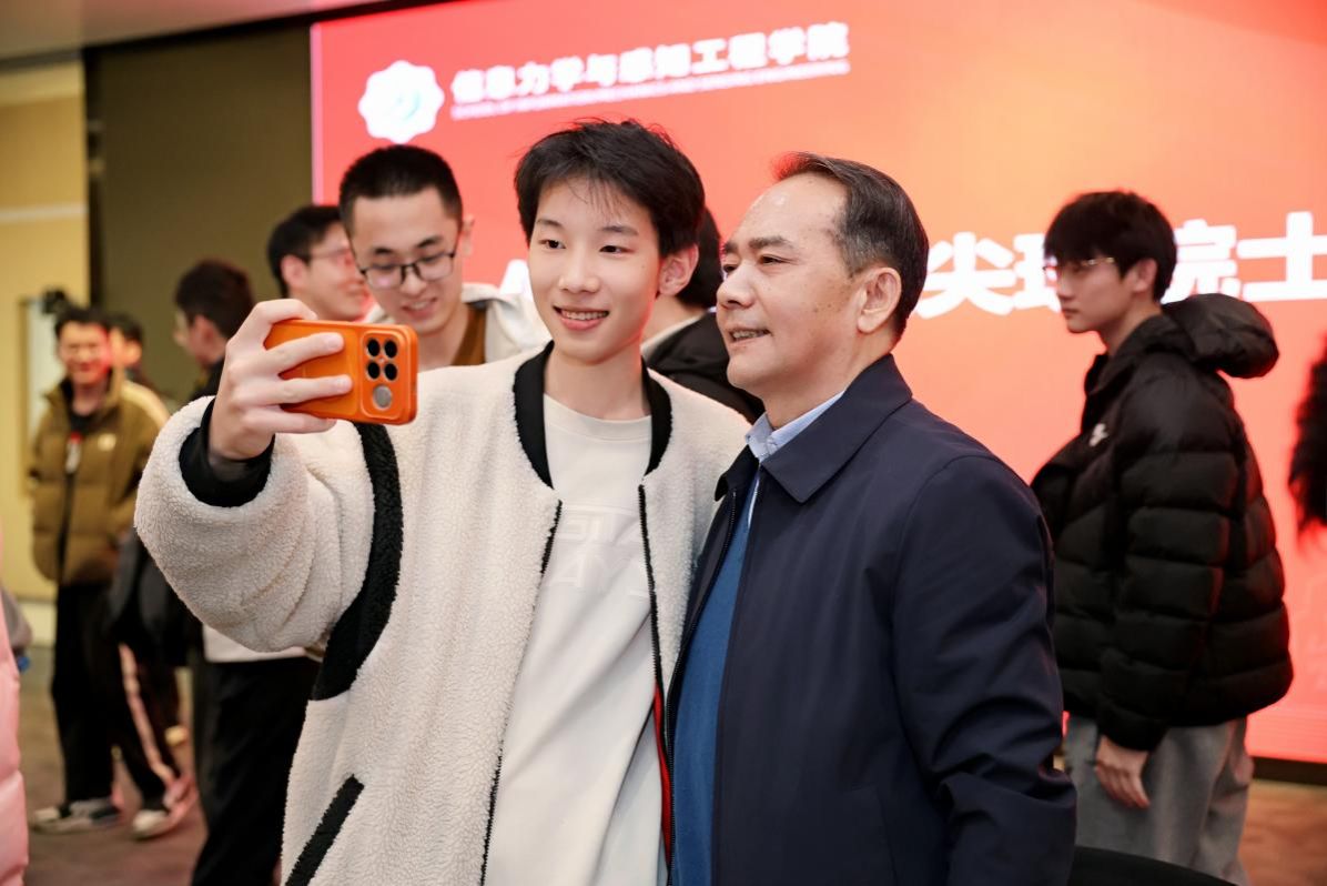 报告会后,周院士出席信息力学拔尖班座谈会。座谈会由2025级团支书俱一涵同学主持,现场气氛热烈。2024级团支书李雨璐首先汇报了拔尖班在班级建设、课程学习、科创竞赛、社会实践以及科研训练等方面取得的成绩,特别介绍了班级在交叉学科学习方面的实践探索。
