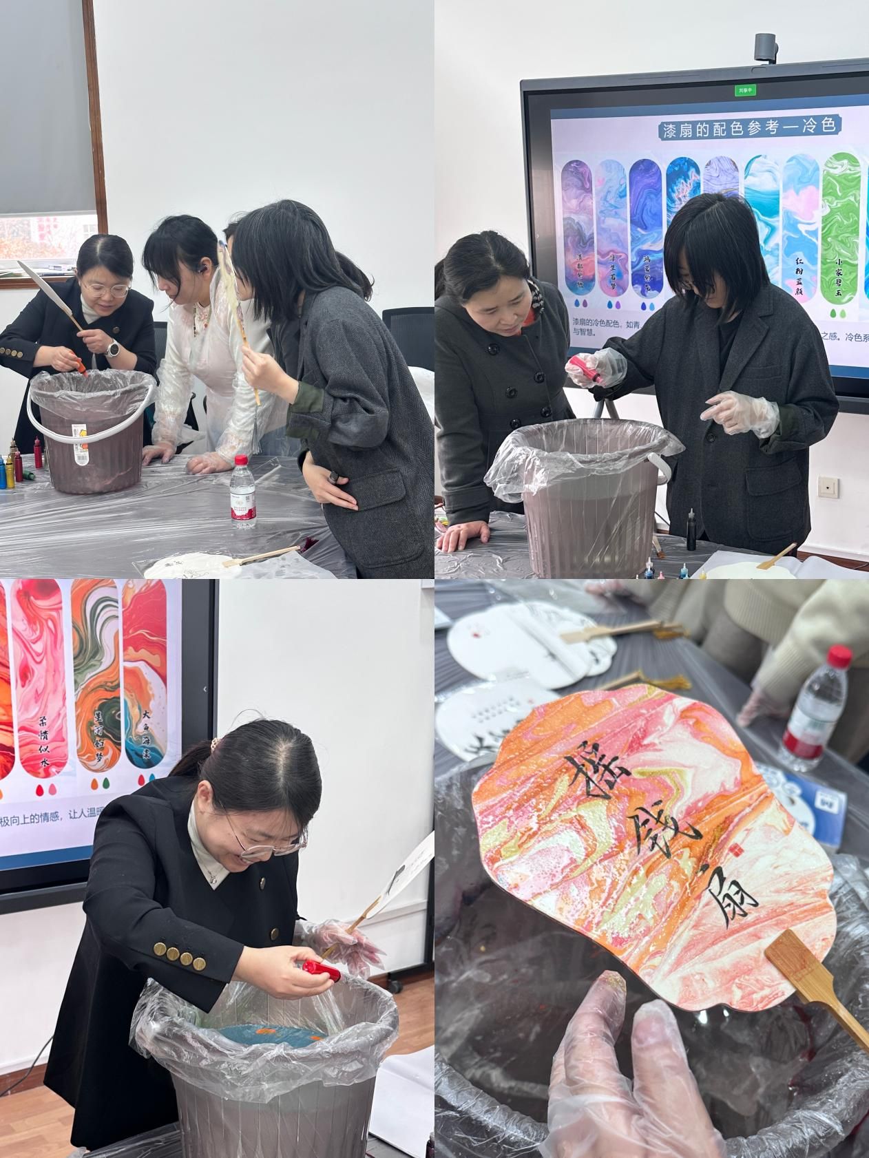 活动邀请非遗手工技艺老师细致讲解、示范指导漆扇绘制与宋锦制作技艺。活动现场暖意融融、欢声笑语不断,大家发挥巧思、巧手创作,一件件独具匠心的漆扇、宋锦作品次第呈现。老师们在轻松愉悦的氛围中舒缓工作压力,尽享传统手工艺带来的治愈与美好。